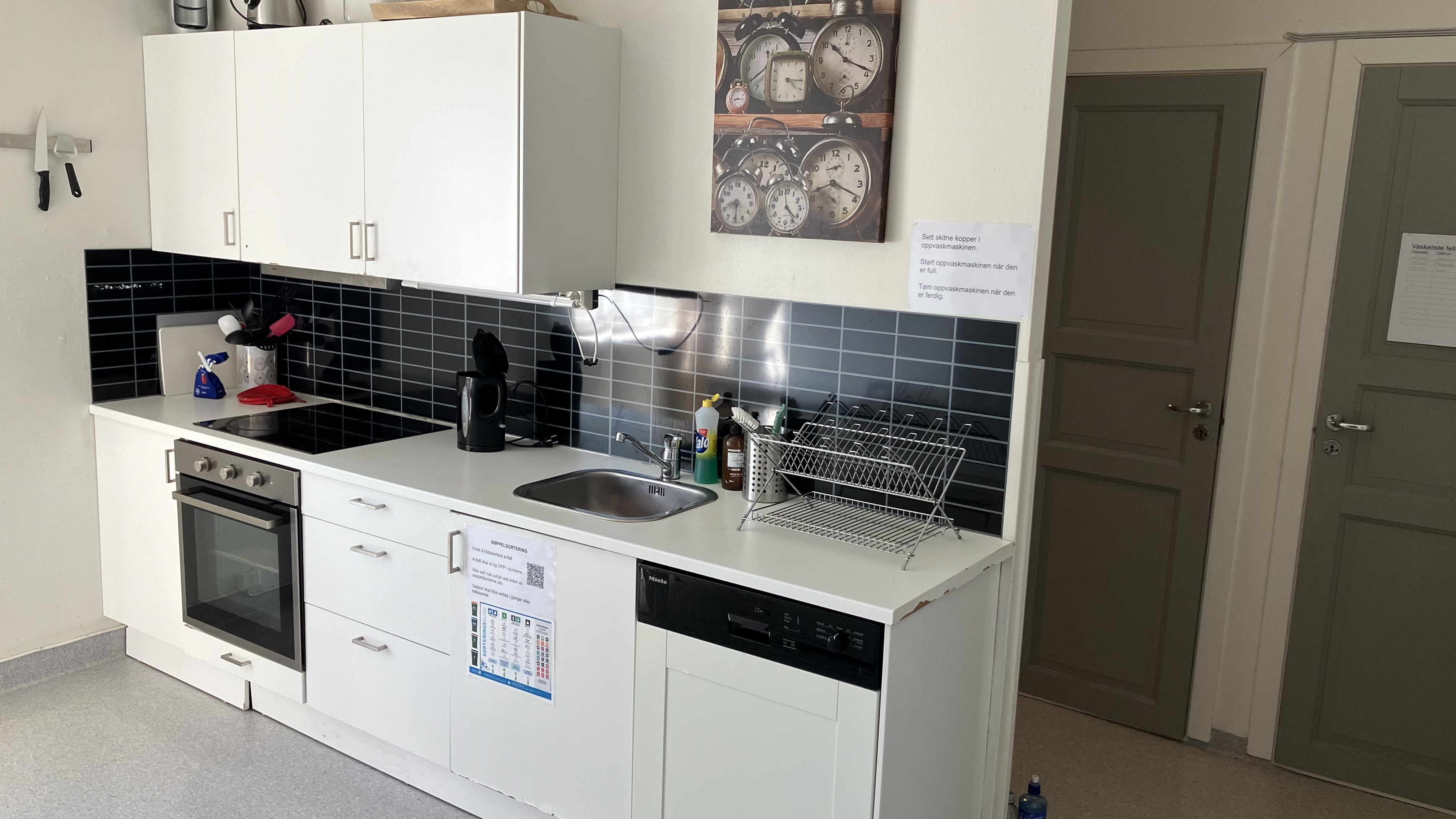 Fellesareale med stue, kjøkken, bad/dusjrom og vaskemaskin.