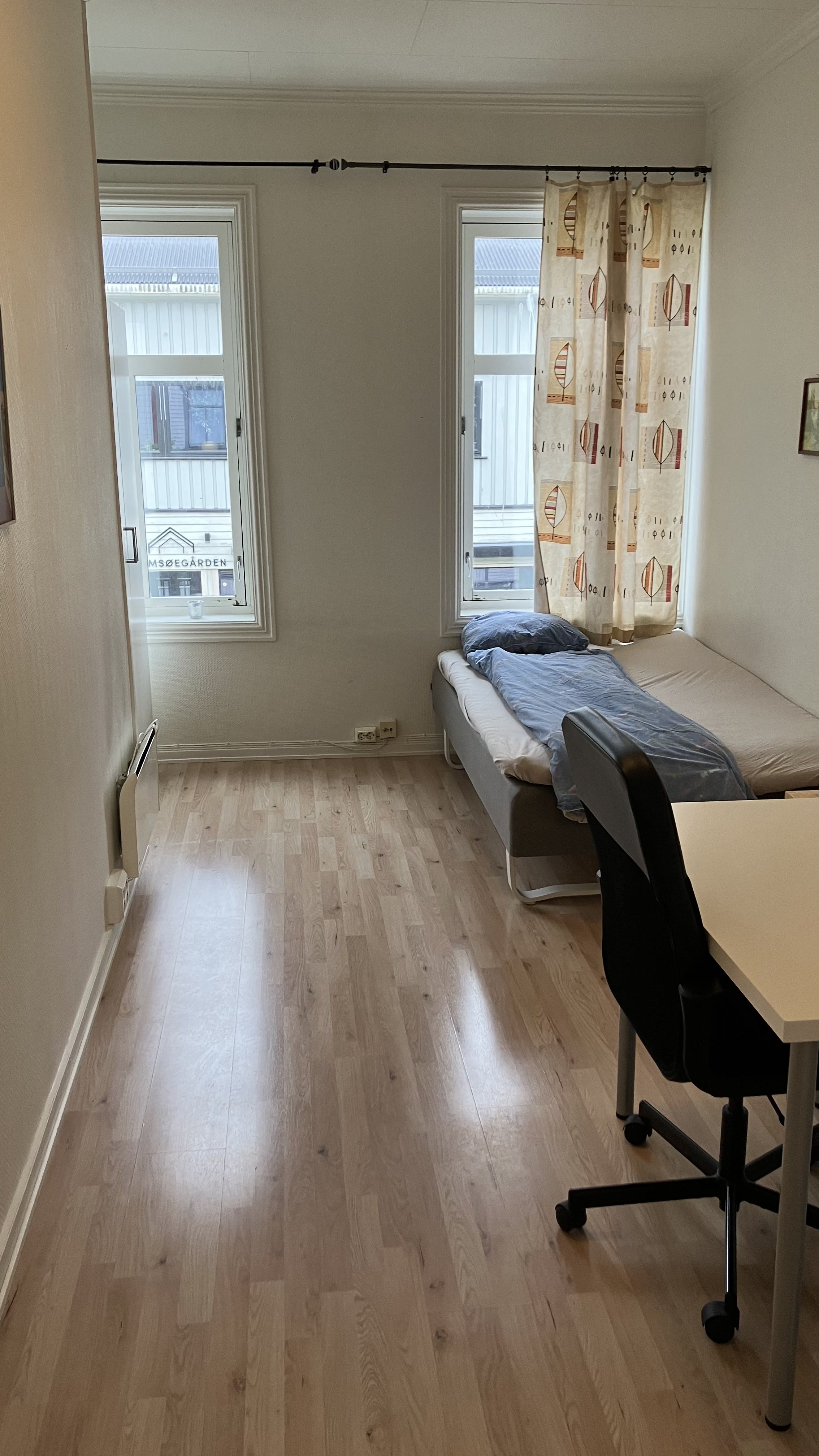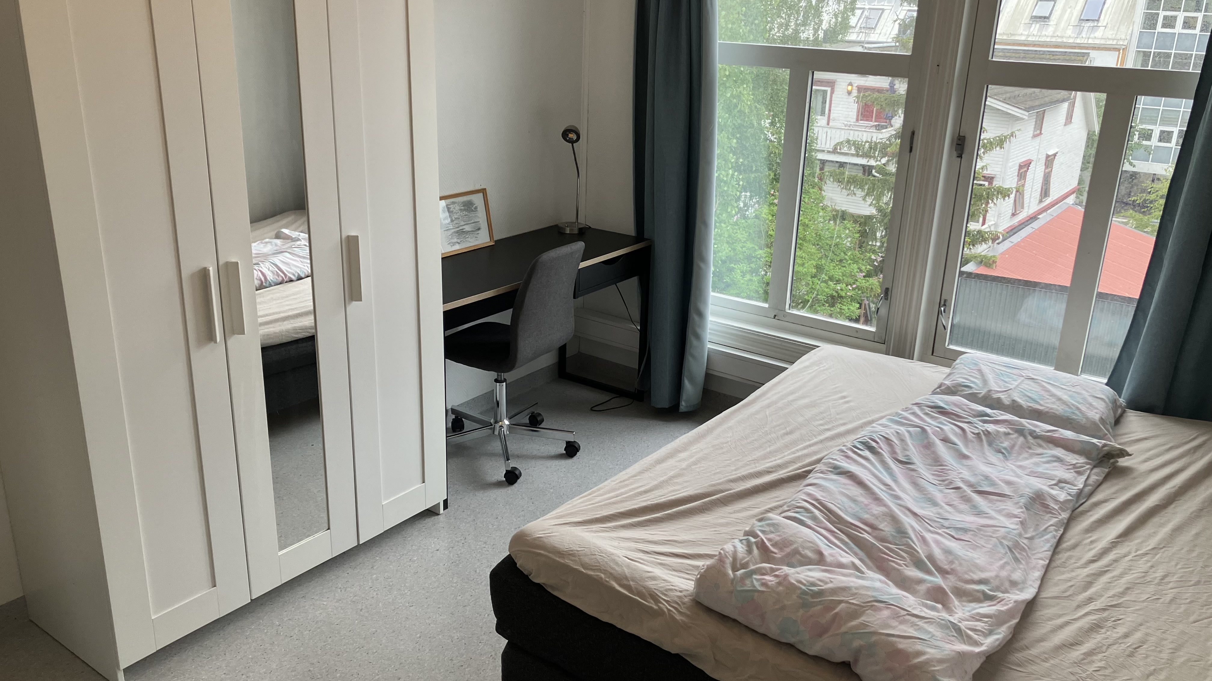 Seng og skrivebord på alle hybler.