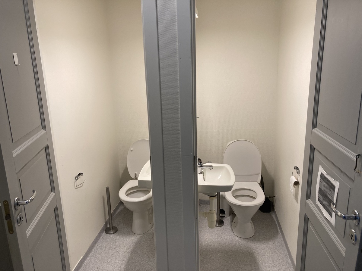 Seng, skrivebord, egen vask på alle hybler.